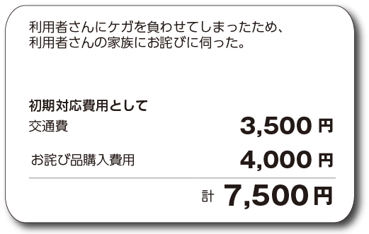 利用者さんのご家族に面談日を誤って伝えてしまい、ご家族が施設へ来てしまった際に、ご家族が負担した交通費も補償します。